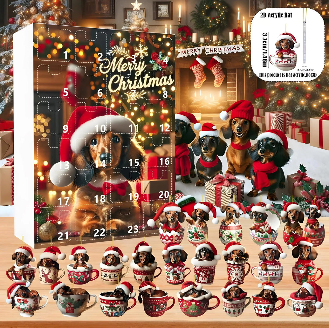 Cute Dachshund Ornament Advent Calendar, 2025 Dog Advent Calendar, Christmas Countdow Calendar
