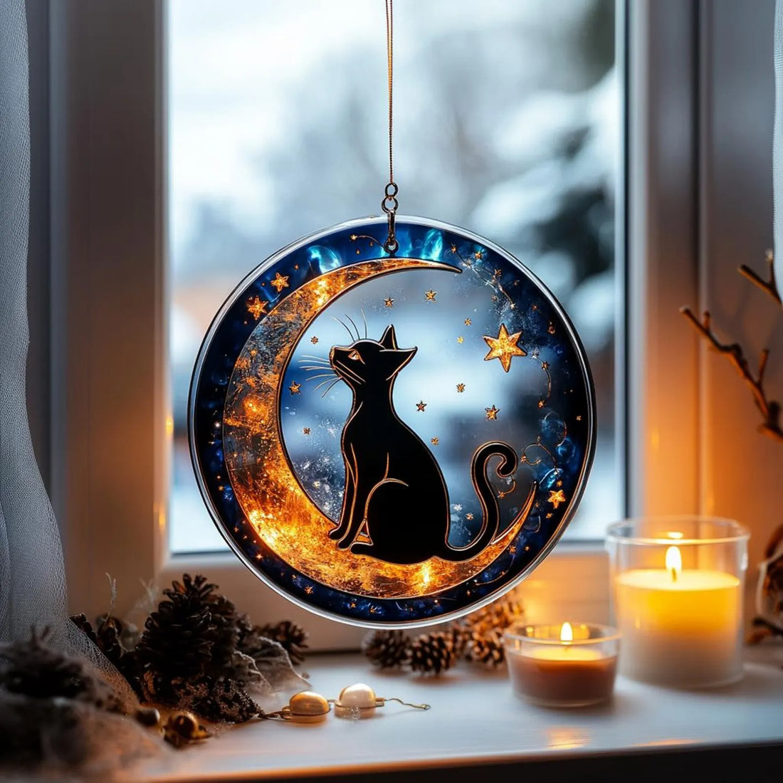 Black Cat on Moon Acrylic Window Hanging Sun Catcher for Cat Moms, Home Decor Window Art, Cat Owner Gift, Moon and Stained Glass Decoration