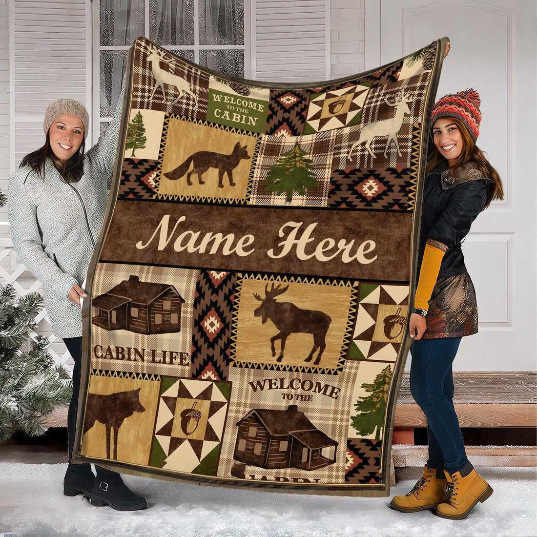 Personalized Hunting Cabin Life Fleece Blanket – Rustic Lodge Throw with Wildlife Design