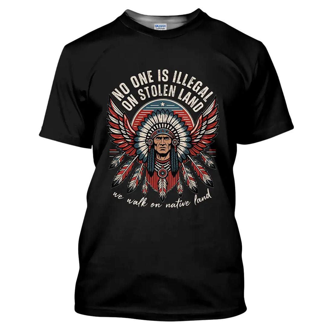 "No One Is Illegal On Stolen Land" , Tribal Chief Native America T-Shirt
