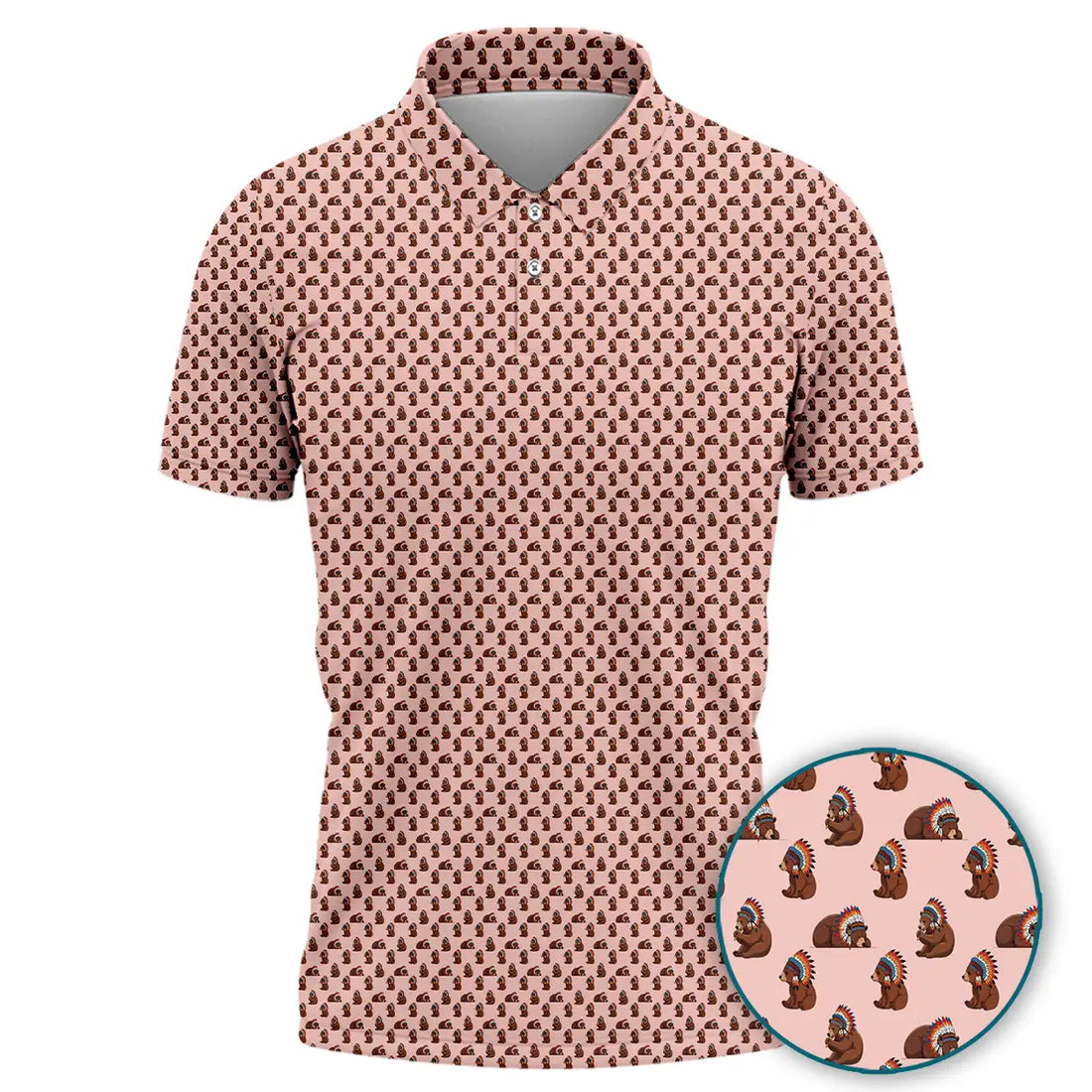 Bear Pattern Polo Shirt, Tribal Animal Print Polo, Wildlife Symbol Apparel