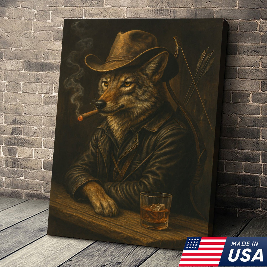 Coyote Cowboy Bar & Whiskey Canvas – Great Hunting Gift for Hunters & Rustic Western Decor