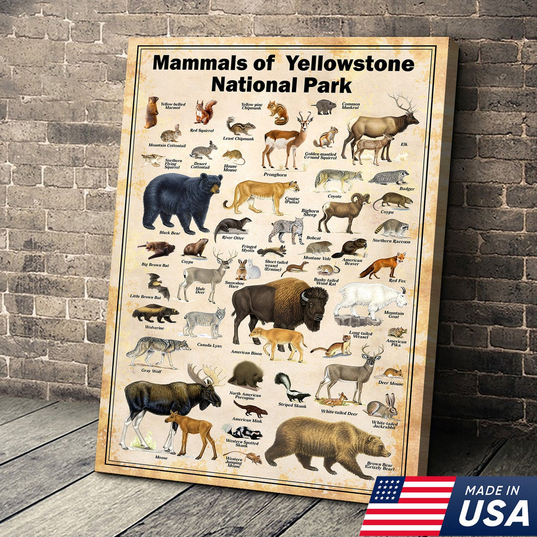 Mammals of Yellowstone National Park Poster – Wildlife Wall Art for Nature Lovers, Hunters & Kids
