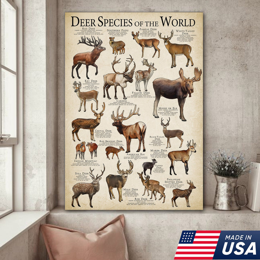 Deer Species of the World Vintage Educational Poster – Rustic Wildlife Wall Art for Cabin & Nature Lovers