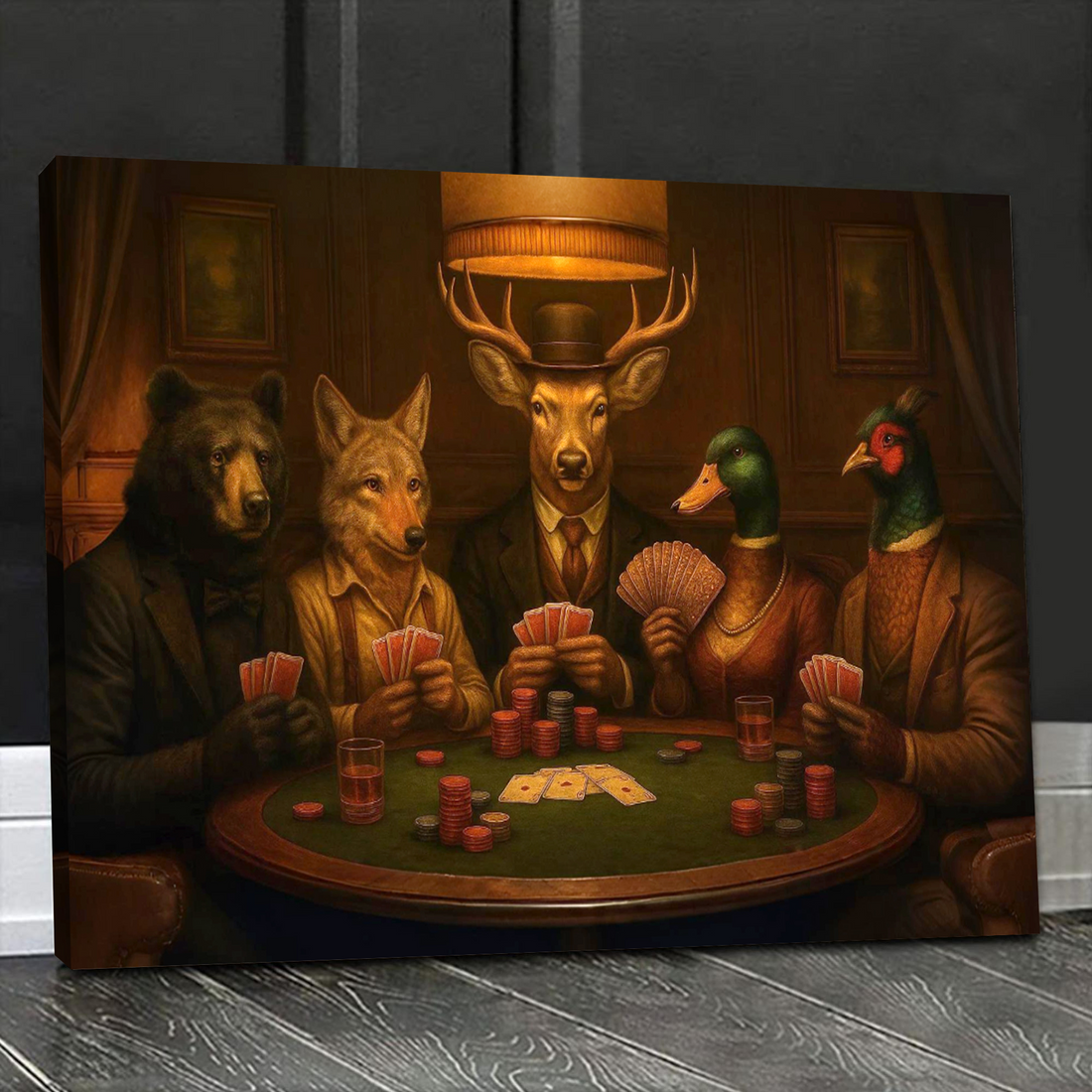 The Poker Club – Vintage Animals Playing Cards Wall Art - Rustic Anthropomorphic Canvas Print for Man Cave & Bar Decor
