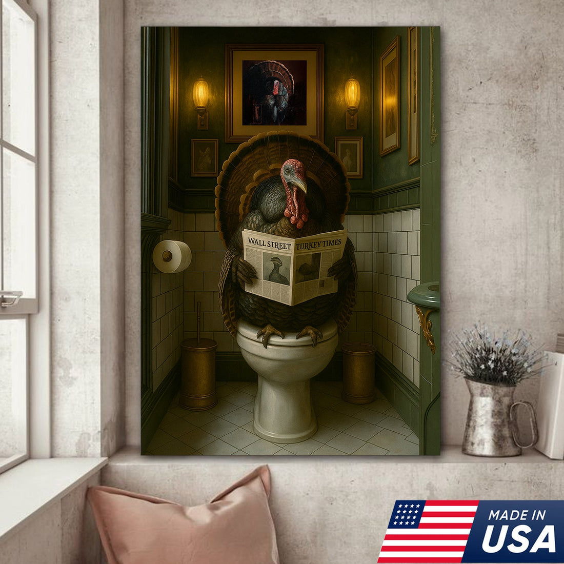 Funny Turkey Bathroom Wall Art – Rustic Cabin Toilet Humor Canvas Decor, Made in USA