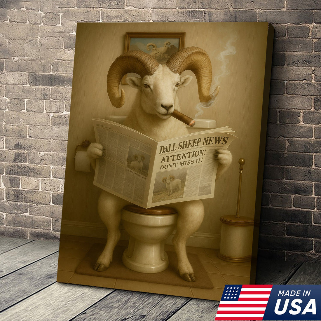 Hilarious Dall Sheep Canvas Wall Art – Rustic Bathroom Decor Perfect for Hunters and Nature Lovers