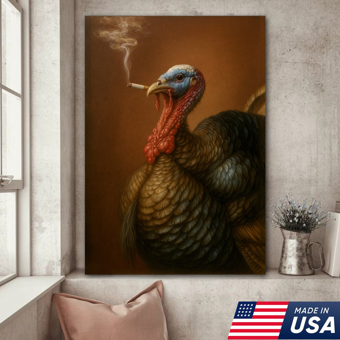 Funny Turkey Smoking Canvas Wall Art – Rustic Farmhouse Gift for Hunters & Wildlife Lovers