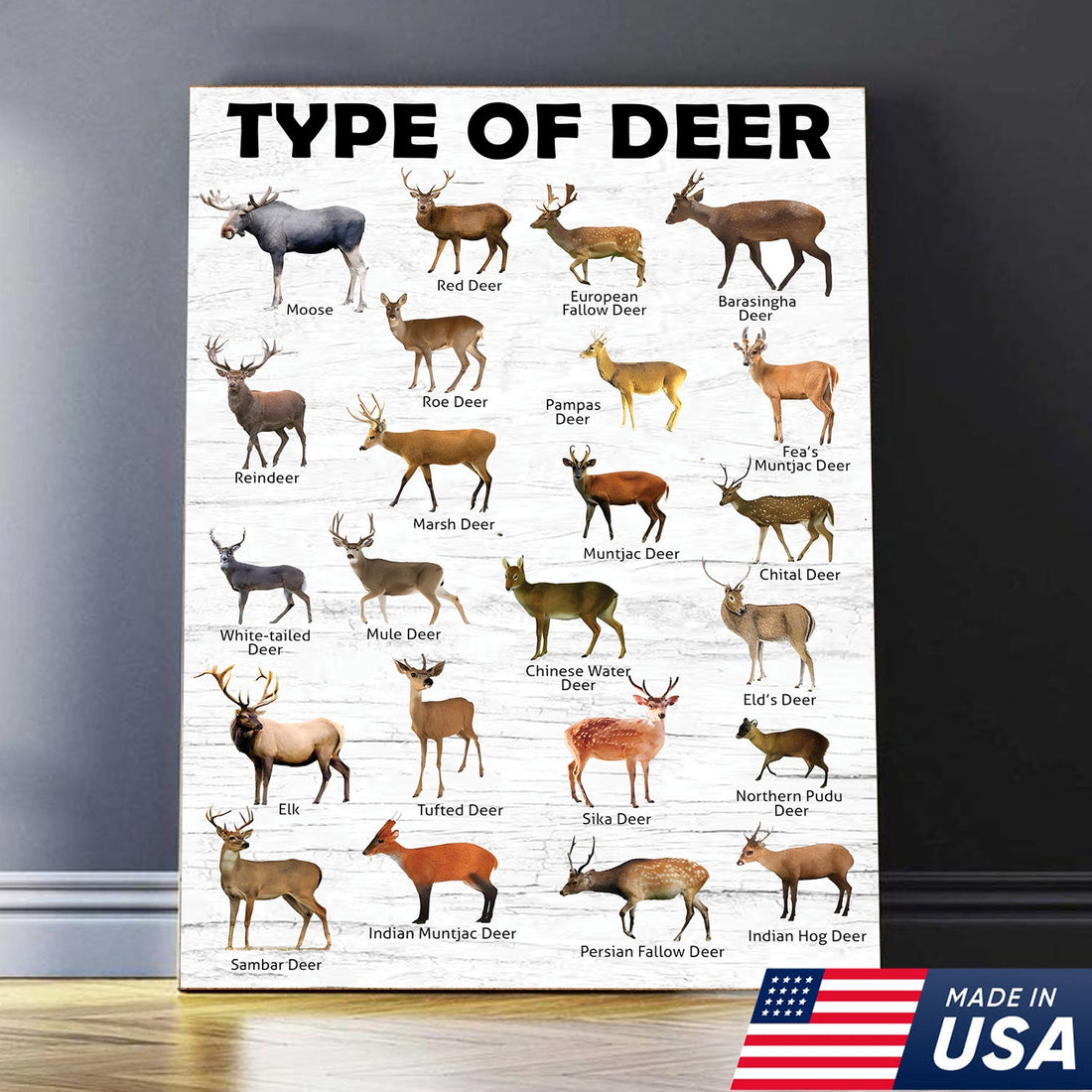 Deer Species Wall Art - Wildlife Educational Canvas - Hunting Lodge Decoration