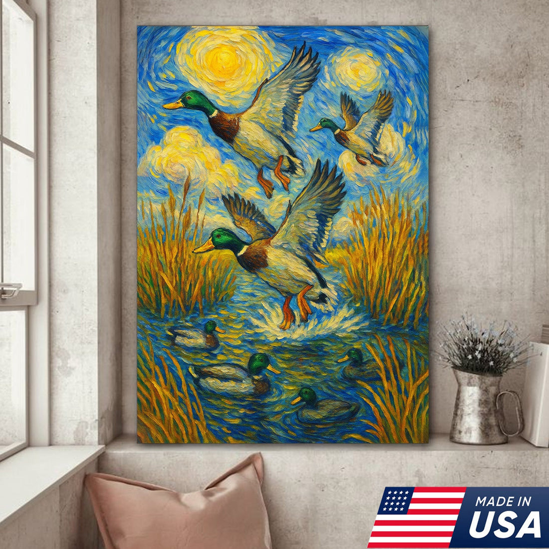 Vintage Mallard Duck Hunting Canvas – Rustic Blue Wildlife Wall Art USA