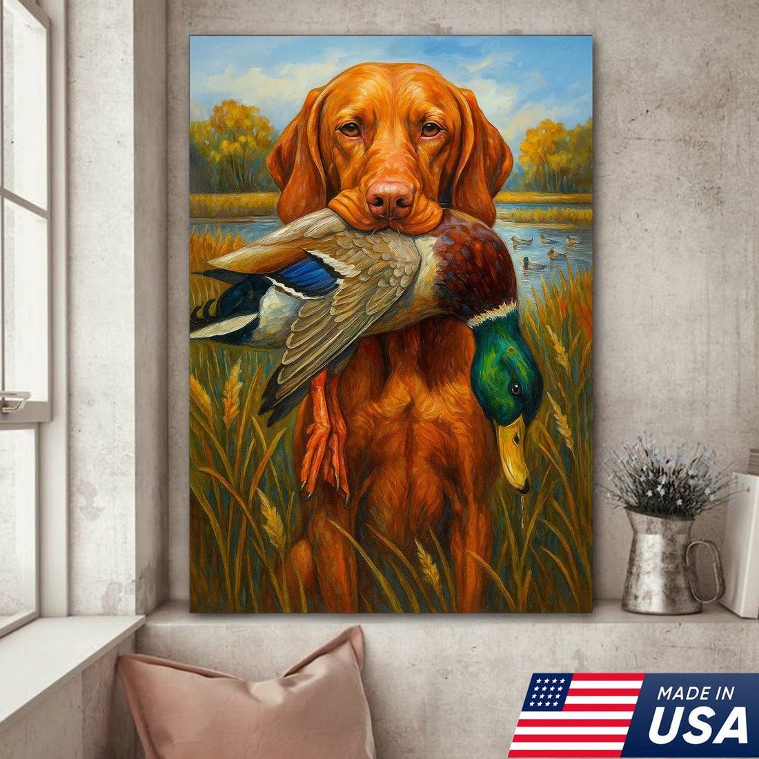 Rustic Hunting Wall Art – Dog and Duck Canvas Print Made in USA