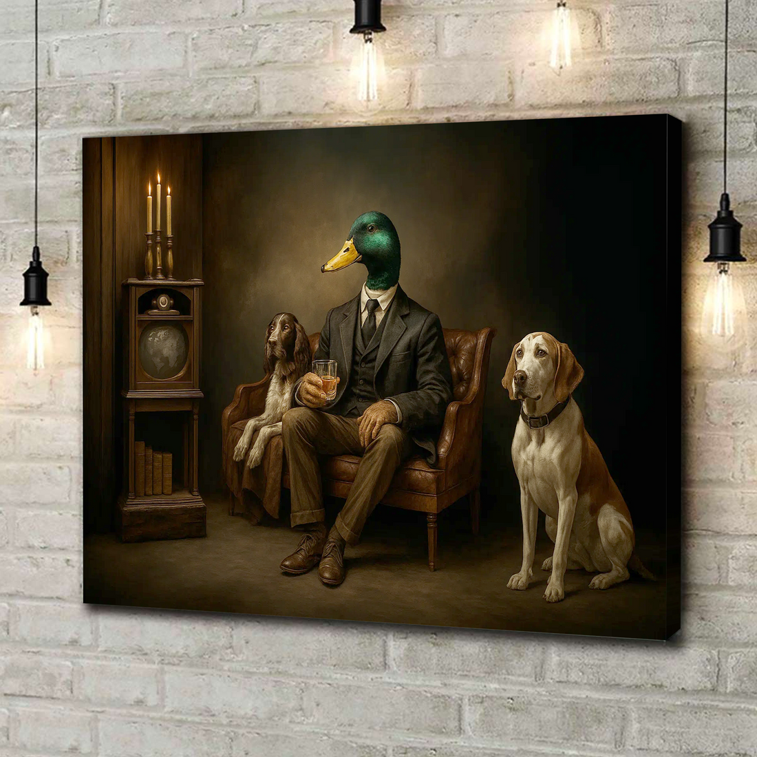 Gentleman Duck Canvas Wall Art – Rustic Whiskey Lounge & Hunting Lodge Decor, Man Cave Dog Lover Gift