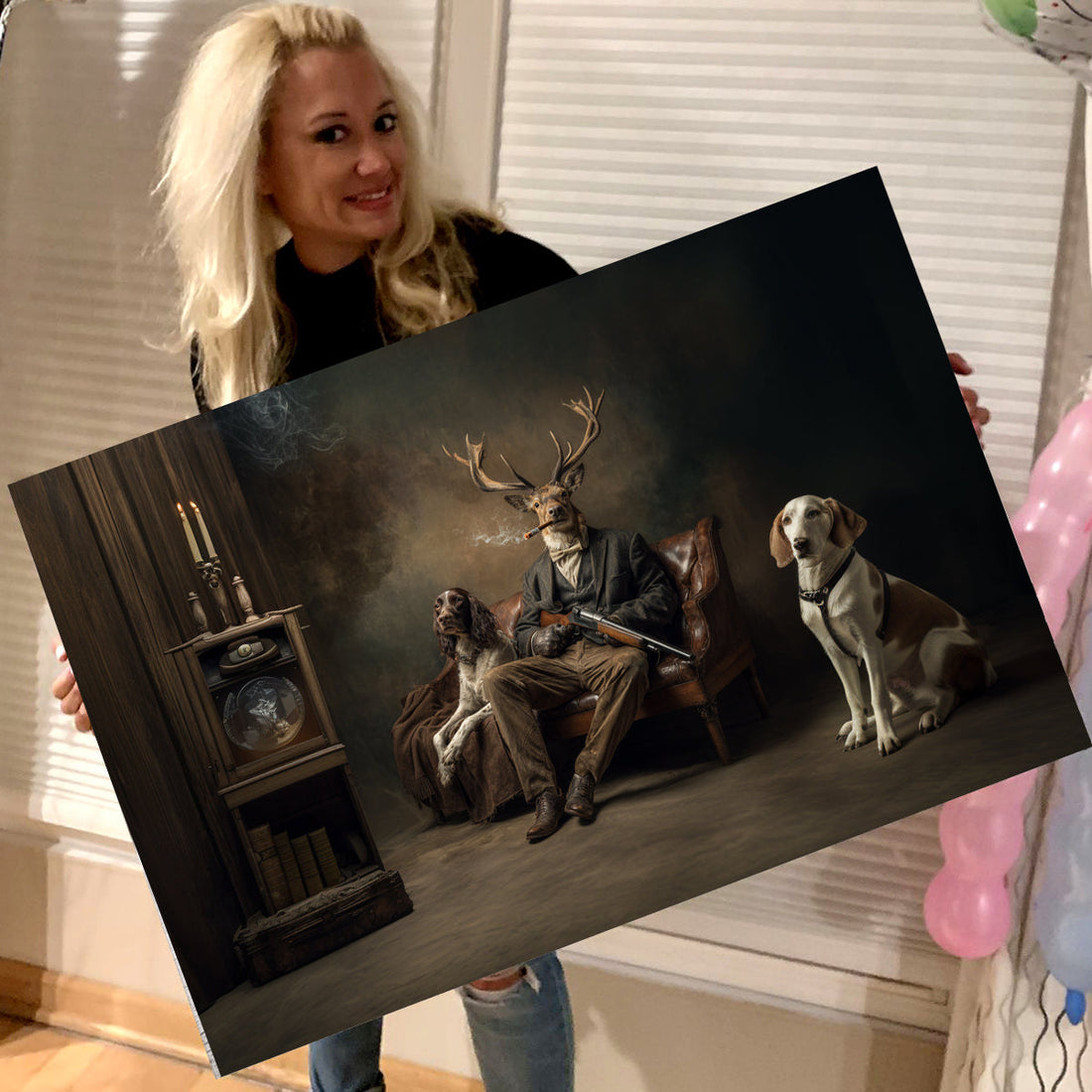 Vintage Style Hunting Deer with Dogs Canvas Print - Humorous Animal Art for Home Decor, Gifts for Hunter, Dad