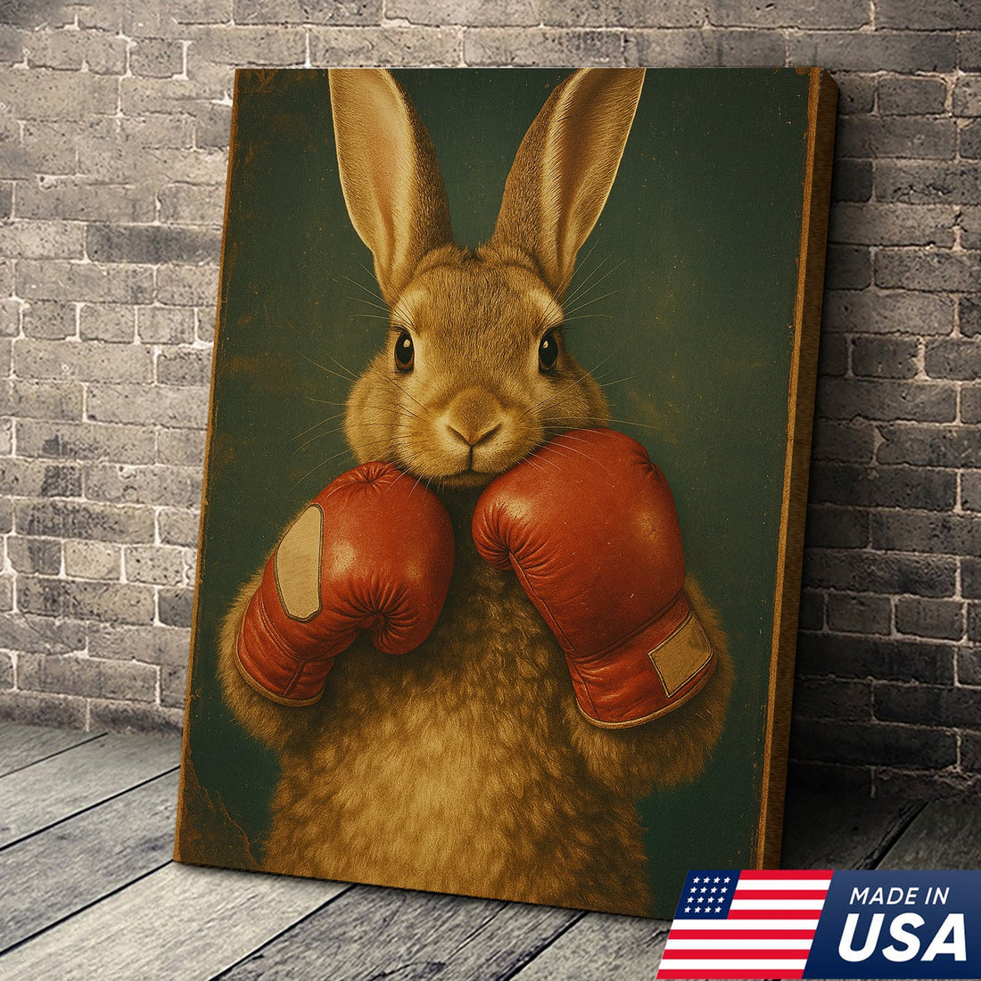 Funny Bunny Boxer Canvas – Sports Animal Wall Art for Gym, Boxing Lovers, Rustic Man Cave Decor