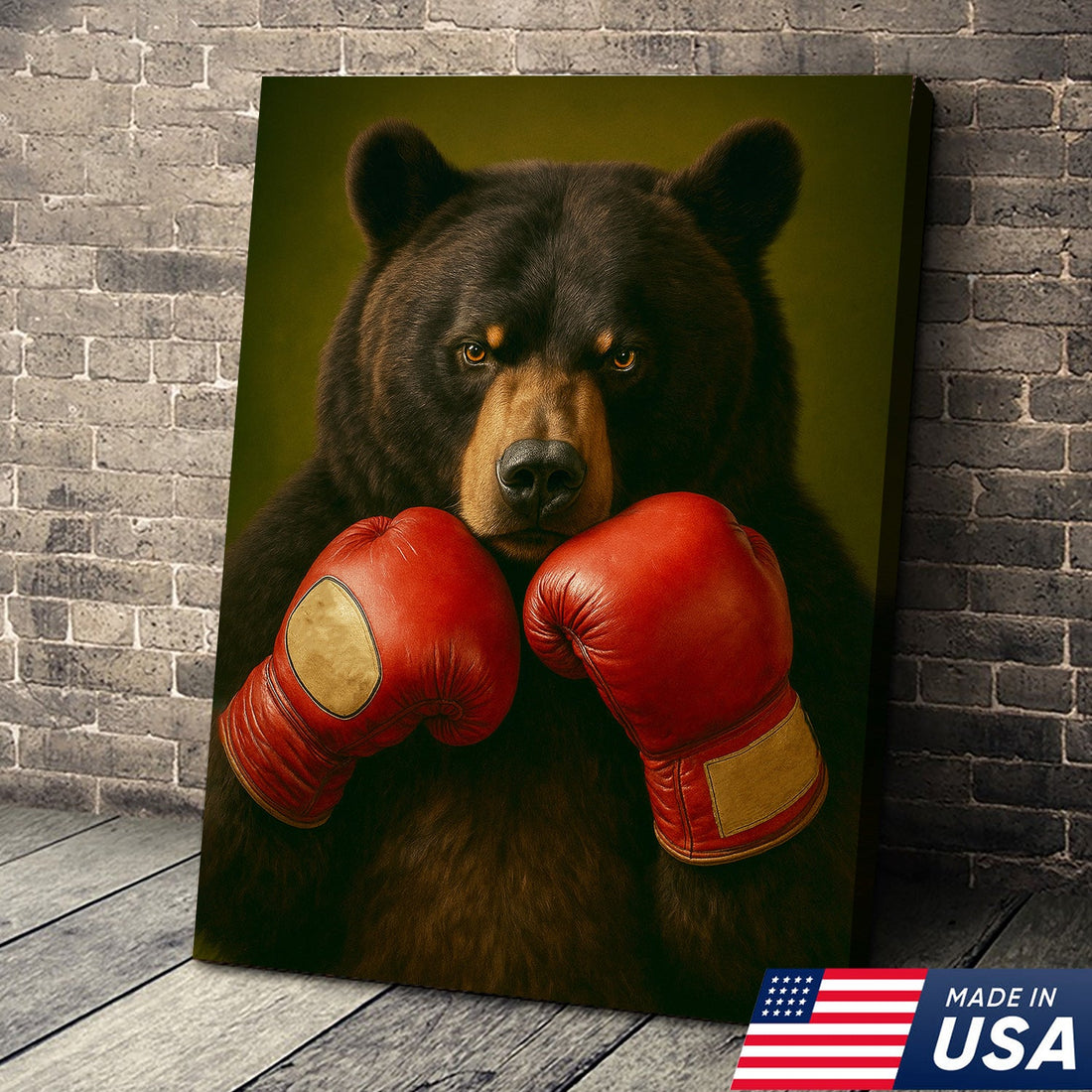 Funny Bear Boxing Canvas – Sports Animal Wall Art for Gym, Boxing Lovers, Rustic Man Cave Décor