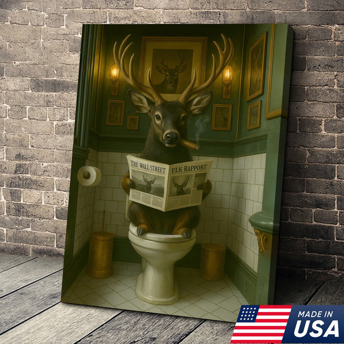 Black-Tailed Deer On Toilet Canvas Wall Art – Unique Funny Bathroom Decor Gift for Hunters, Lodge, Rustic Home