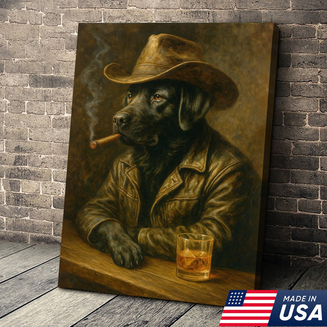 Labrador Cowboy Canvas Wall Art – Rustic Country Dog Print for Hunters, Lodge, and Whiskey Lovers