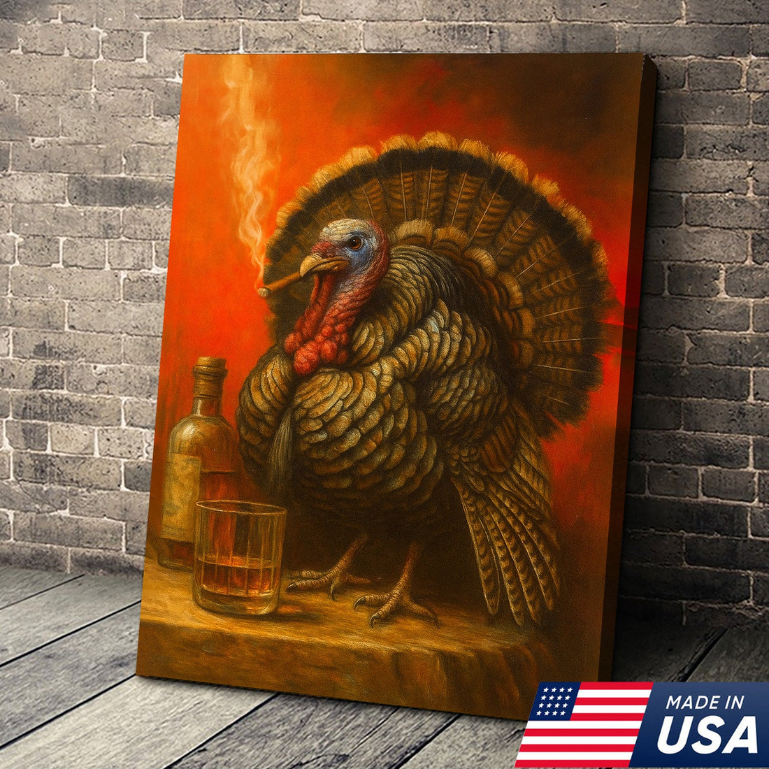 Thanksgiving Turkey Canvas – Funny Whiskey & Smoking Wall Art for Rustic Cabin, Lodge, and Man Cave Decor