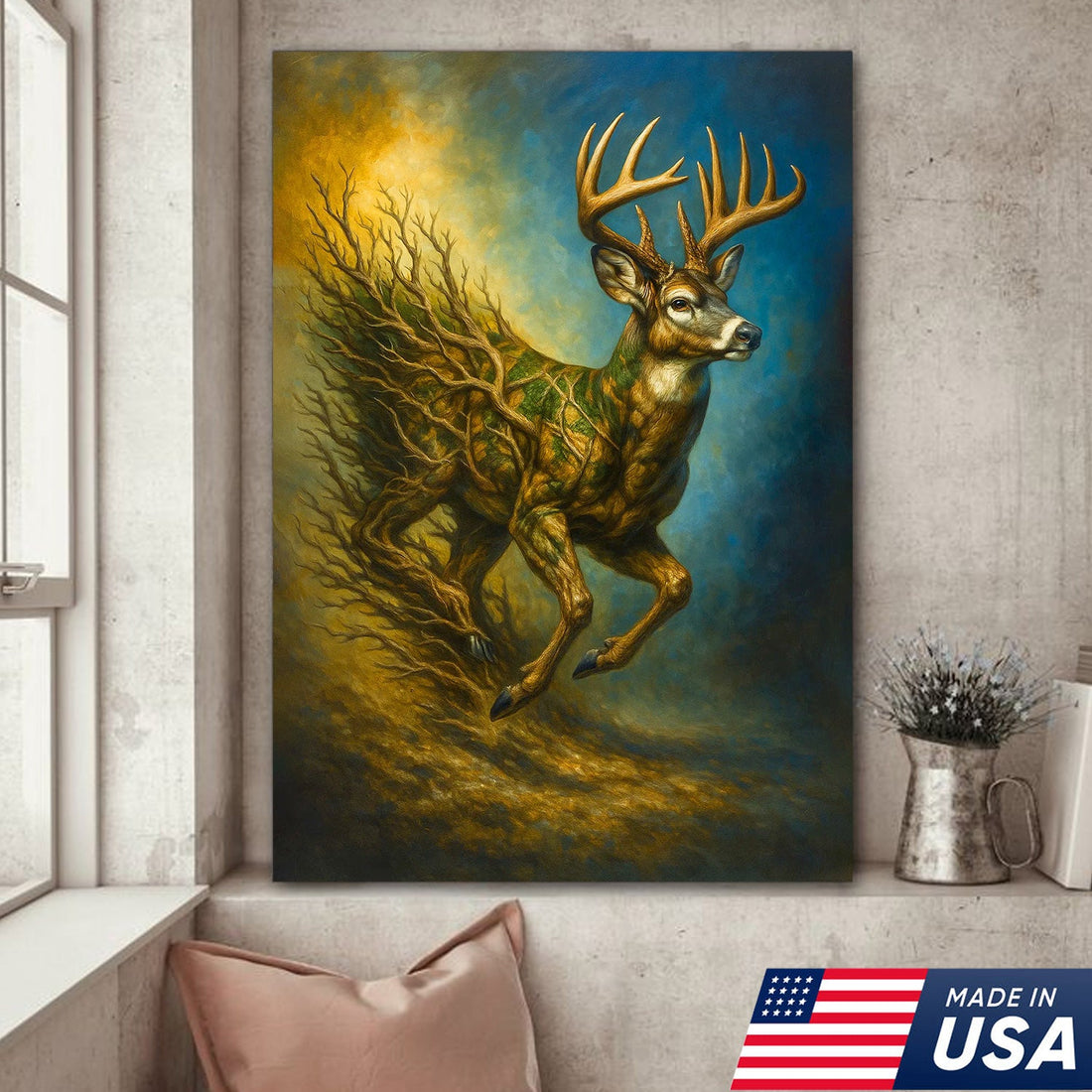 Majestic Deer Canvas Wall Art – Surreal Wildlife Nature Scene – Rustic Lodge and Cabin Decor