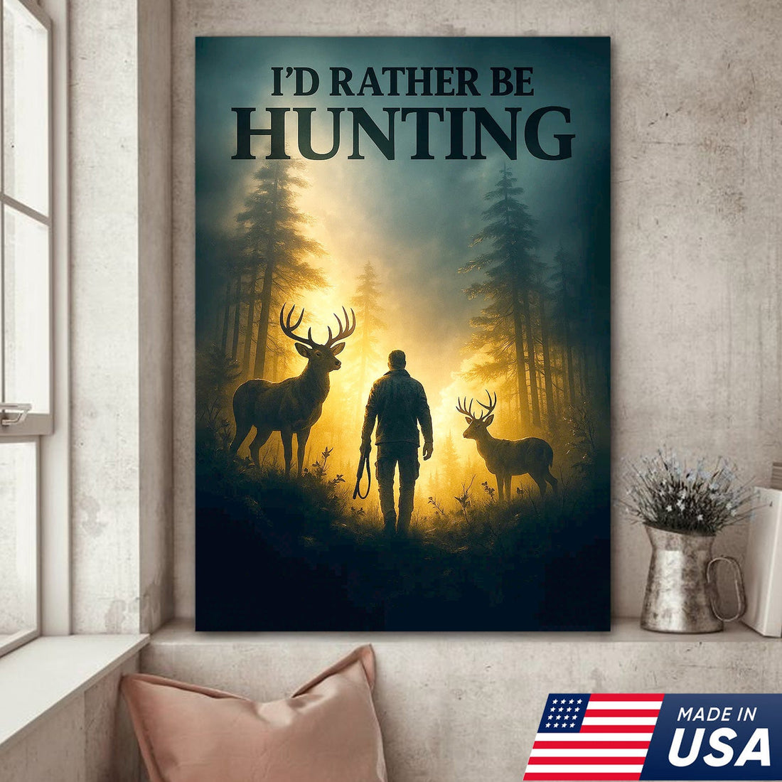 I'd Rather Be Hunting Canvas Wall Art – Rustic Deer and Hunter Scene – Cabin Lodge Outdoor Decor