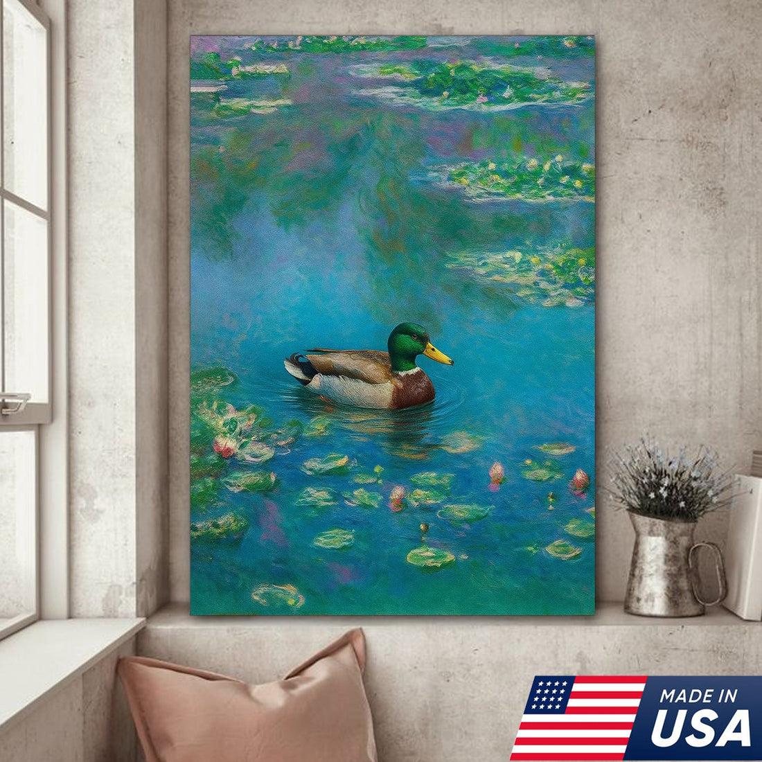 Serene Duck Pond Canvas Wall Art – Tranquil Mallard Painting – Rustic Cabin and Lodge Decor