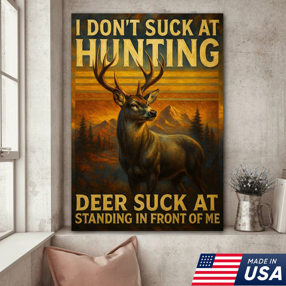Funny Deer Hunting Canvas Wall Art – Rustic Lodge Decor – Unique Gift for Hunters and Outdoorsmen