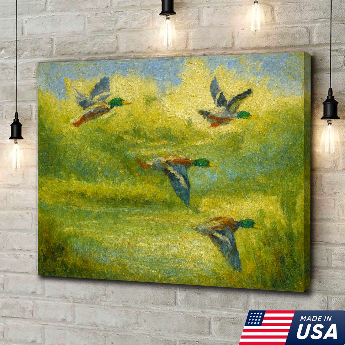 Mallard Duck Hunting Canvas Wall Art – Rustic Wildlife Decor, Flying Ducks Painting, Nature Lodge Artwork