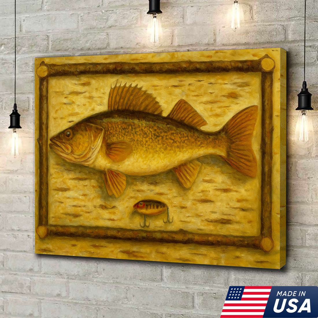 Fishing Wall Art Canvas – Walleye Fish & Vintage Lure Rustic Cabin Lodge Decor Painting