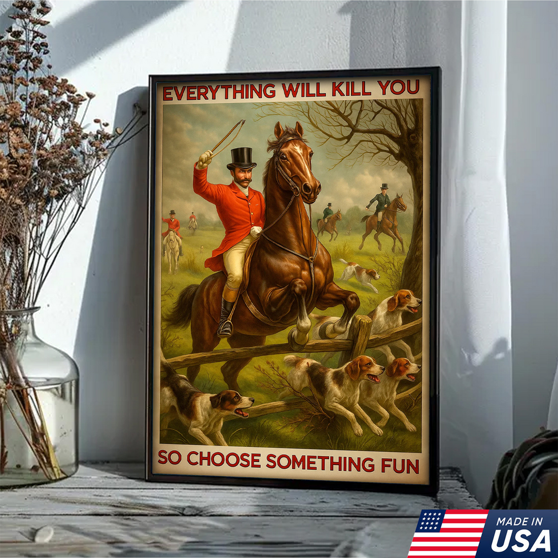 Funny Fox Hunting Canvas Wall Art – Vintage Equestrian Artwork, Rustic Lodge Decor, “Everything Will Kill You So Choose Something Fun”