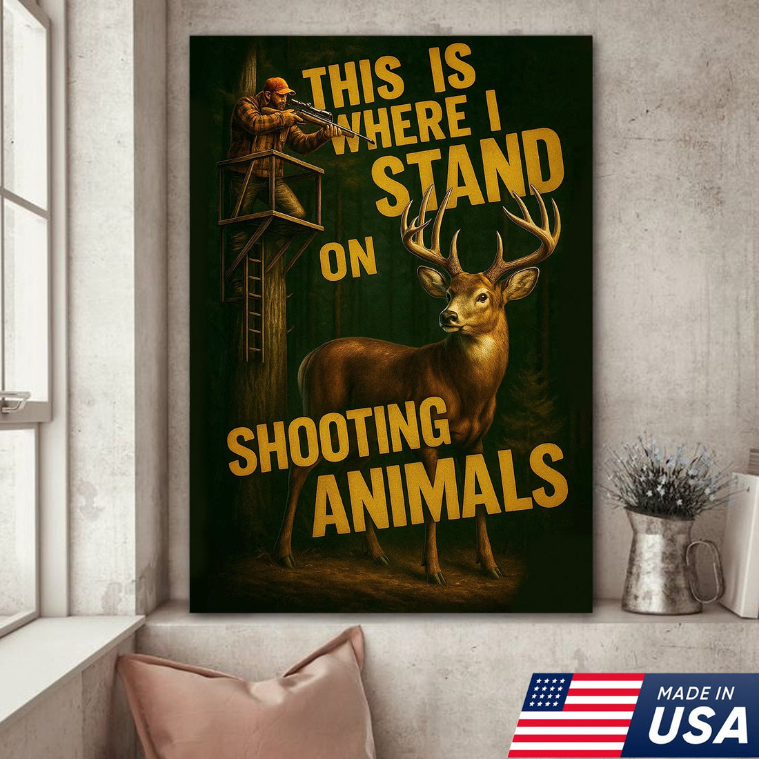 Deer Hunting Canvas Wall Art – Hunter in Tree Stand with Quote “This Is Where I Stand” – Rustic Lodge & Cabin Decor