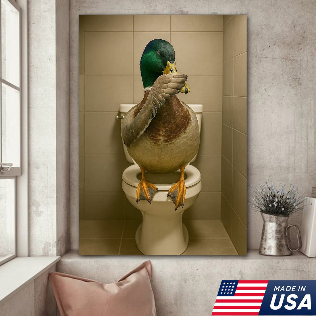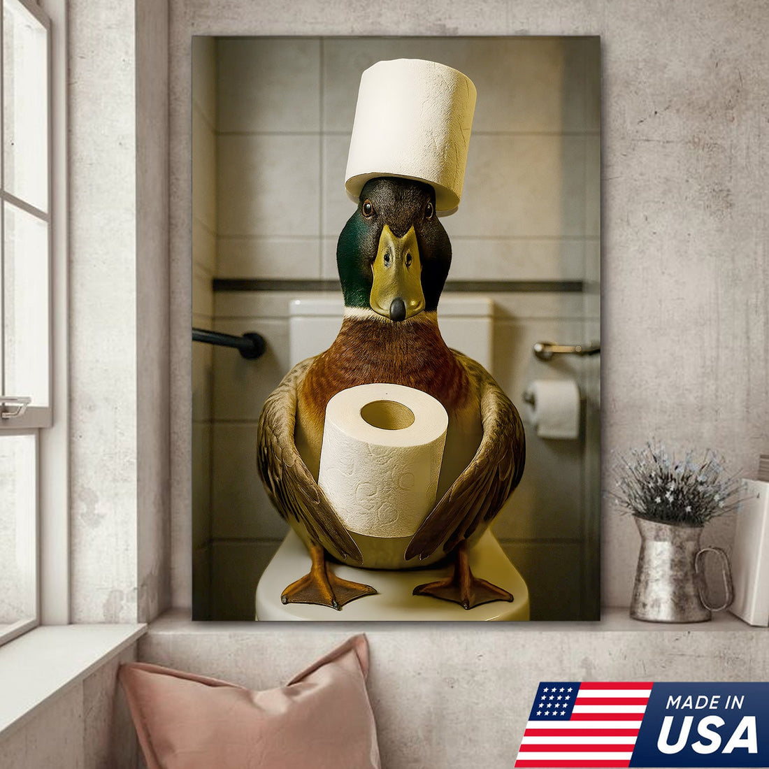 Funny Duck Bathroom Wall Art – Hilarious Rustic Toilet Canvas for Cabin, Lodge & Man Cave Decor