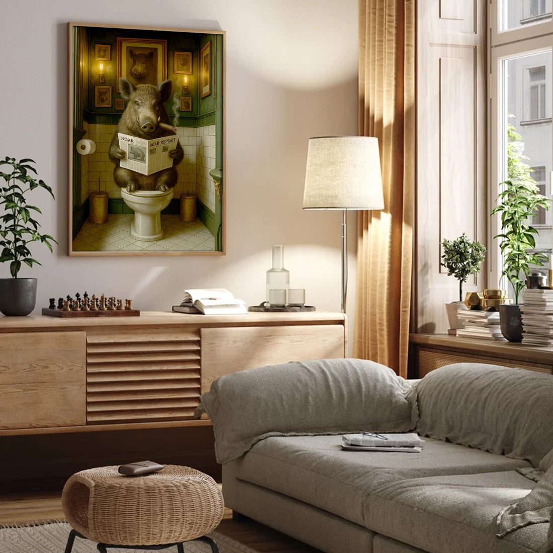 Boar Reading News Smoking Bathroom Wall Art – Rustic Decor for Men, Hilarious Gift for Men, Hunter