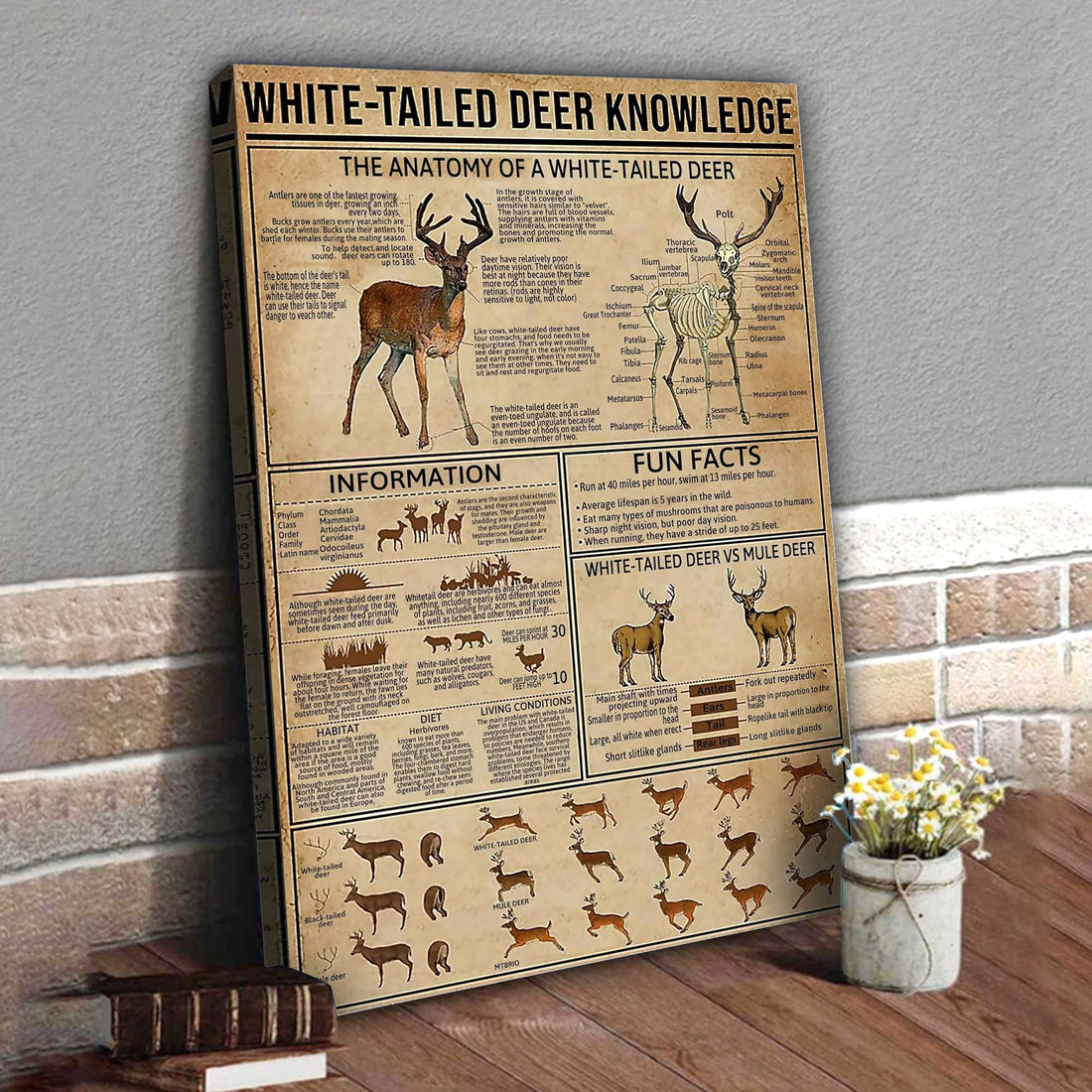White-Tailed Deer Knowledge Canvas– Hunting Wall Art for Cabin, Lodge & Wildlife Lovers