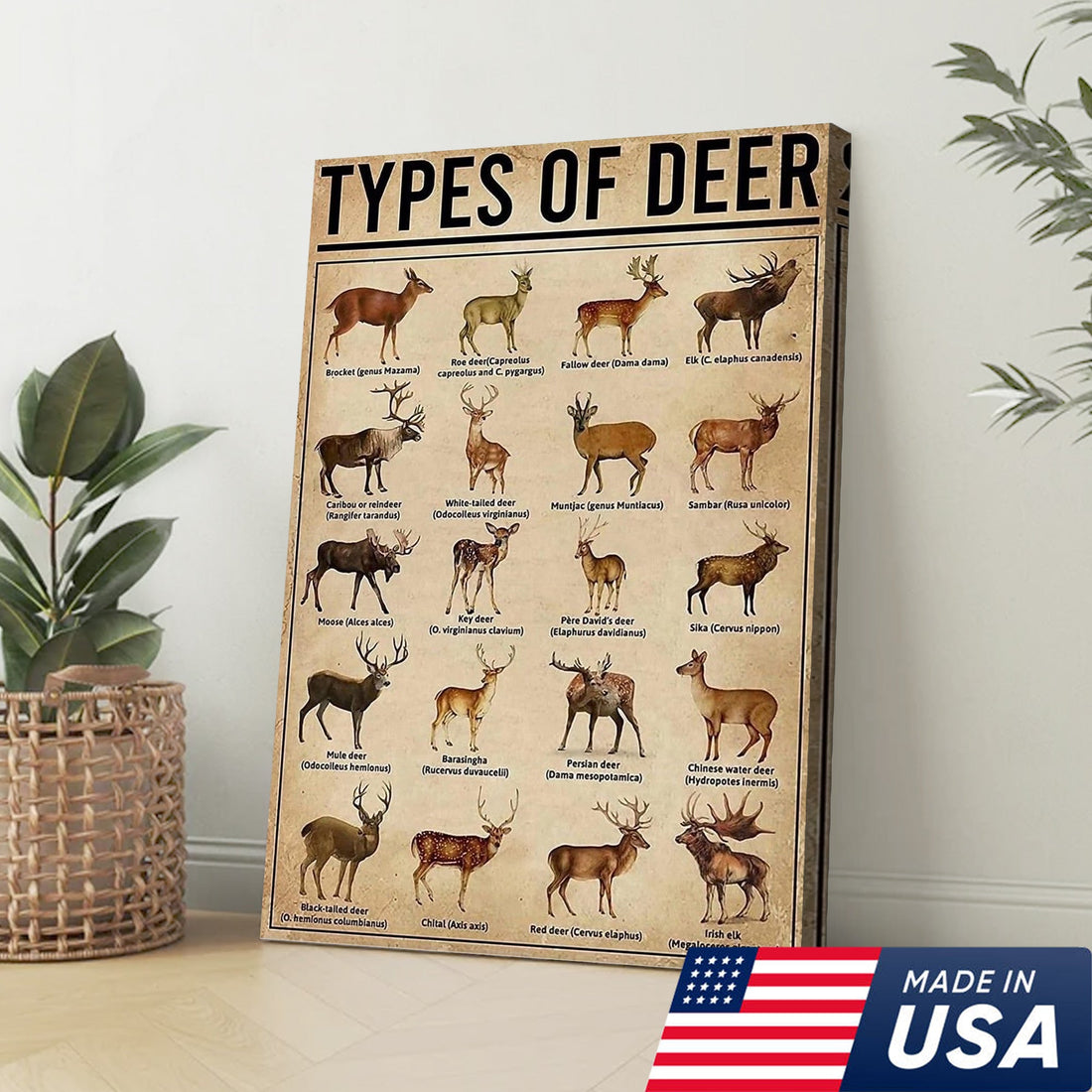 Types of Deer Canvas – Educational Deer Hunting Wall Art & Wildlife Guide, Perfect Decor for Hunters & Wildlife Lovers
