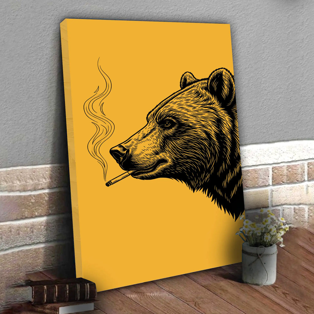 Vintage Canvas Poster, Smoking Bear Wall Art, Rustic Western Decor