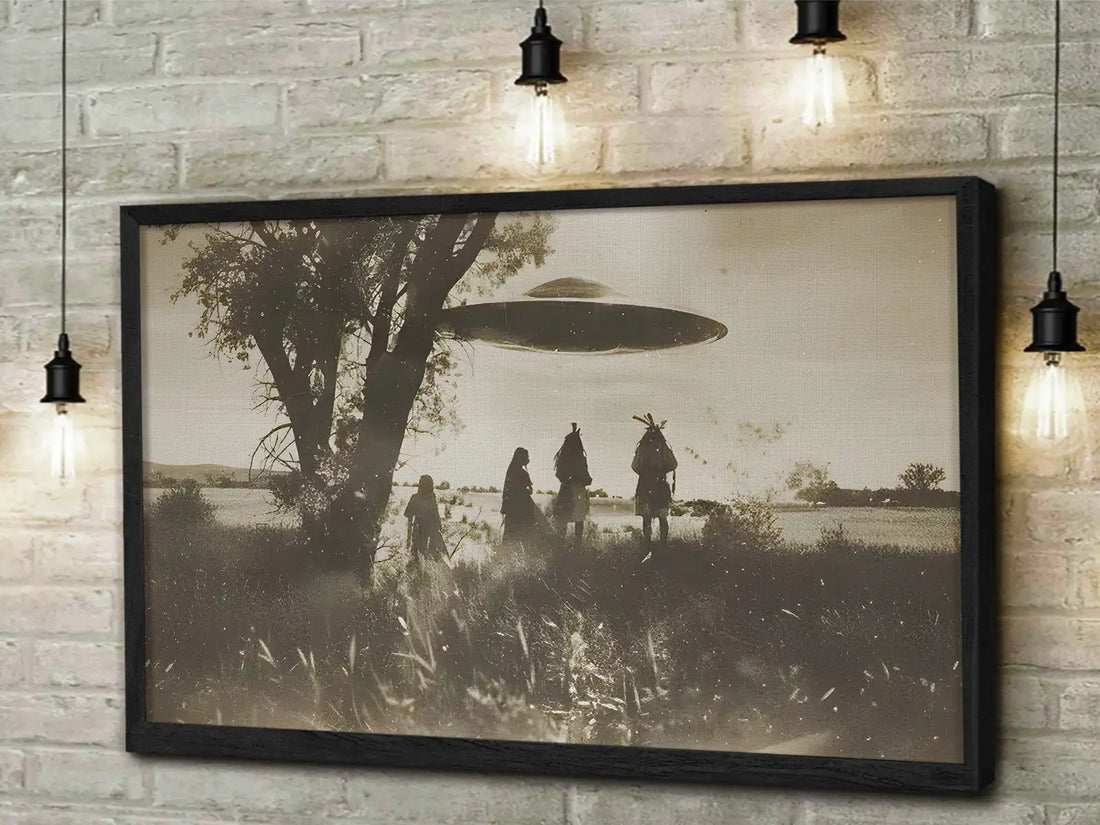 Vintage UFO Wall Art, Native American Mystery Canvas Decor