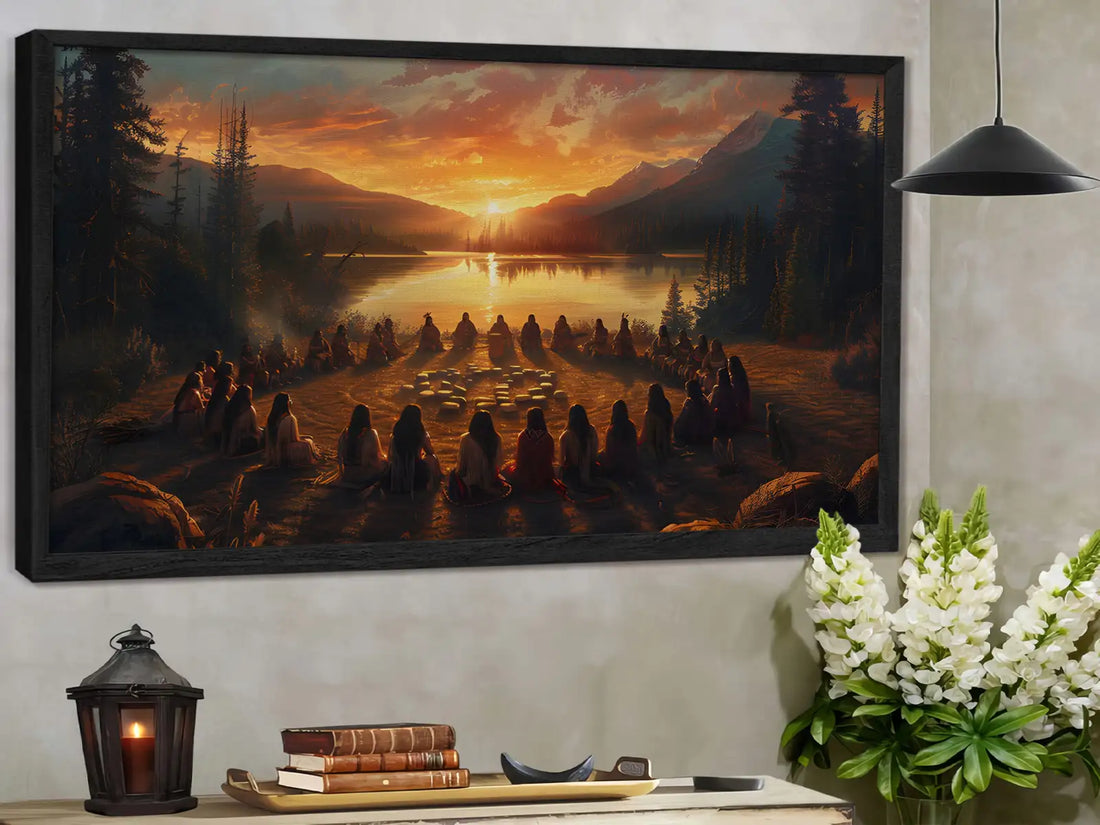 Tribal Gathering Sunset Ceremony Canvas Wall Art Canvas
