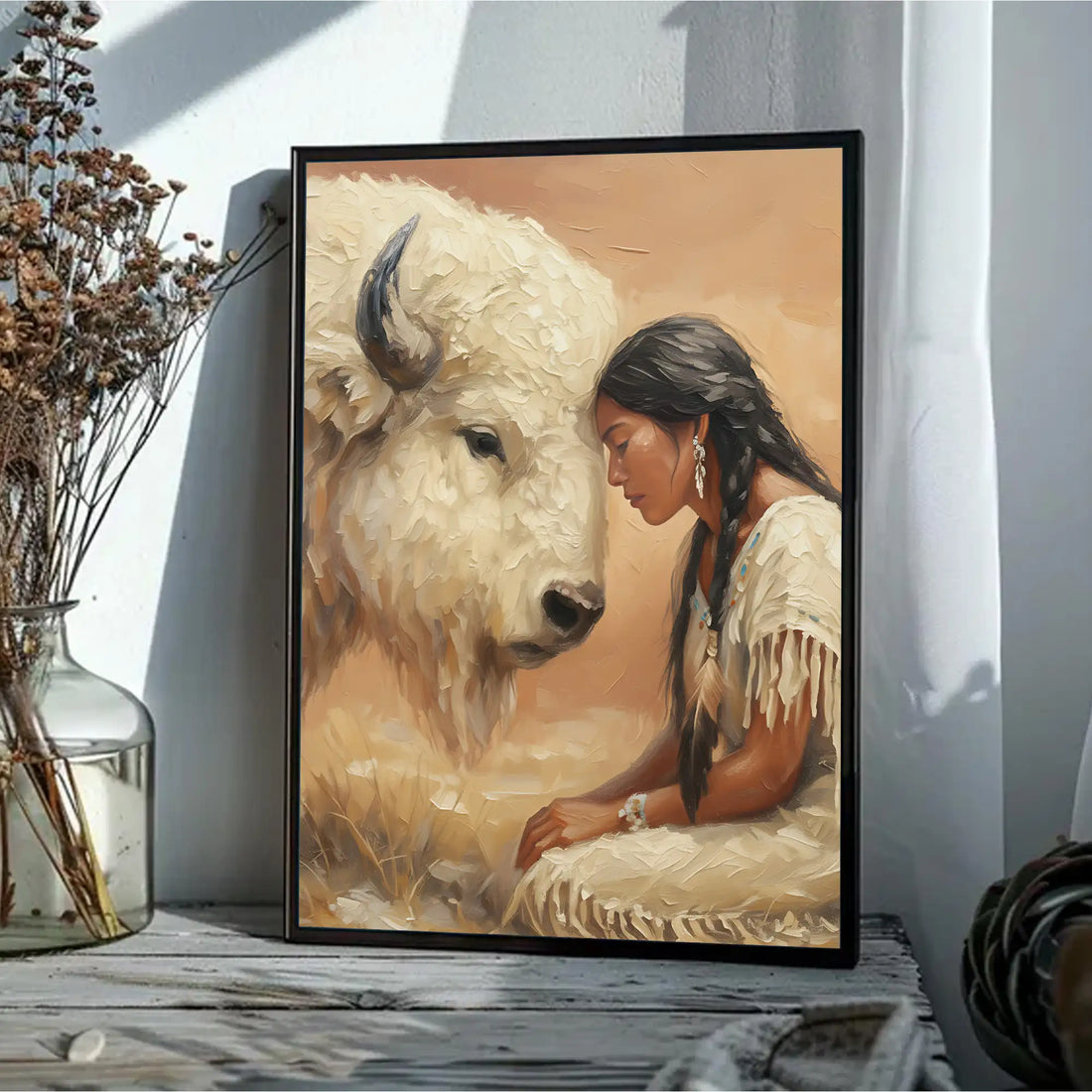 Spiritual Canvas Woman with White Buffalo Native American Wall Art