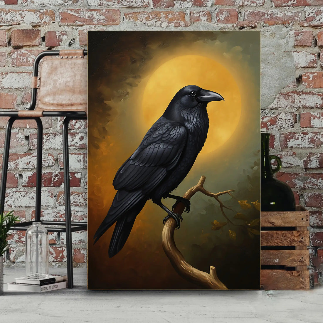 "A Raven Brings The Light" Wall Art, Crow And Moon Canvas Painting For Home Decor