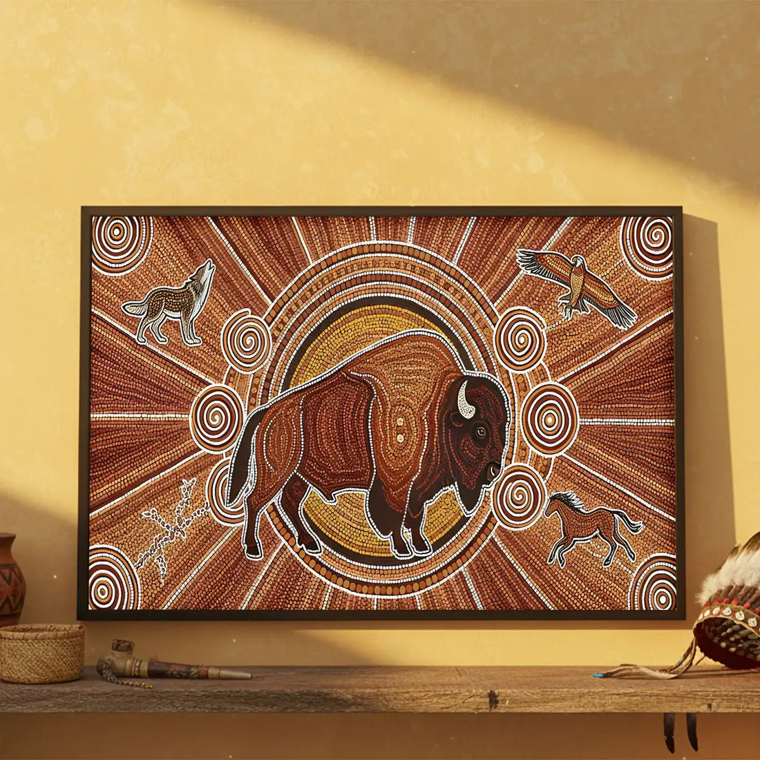Sacred Bison Sun Animal Painting Indigenous Canvas Wall Art