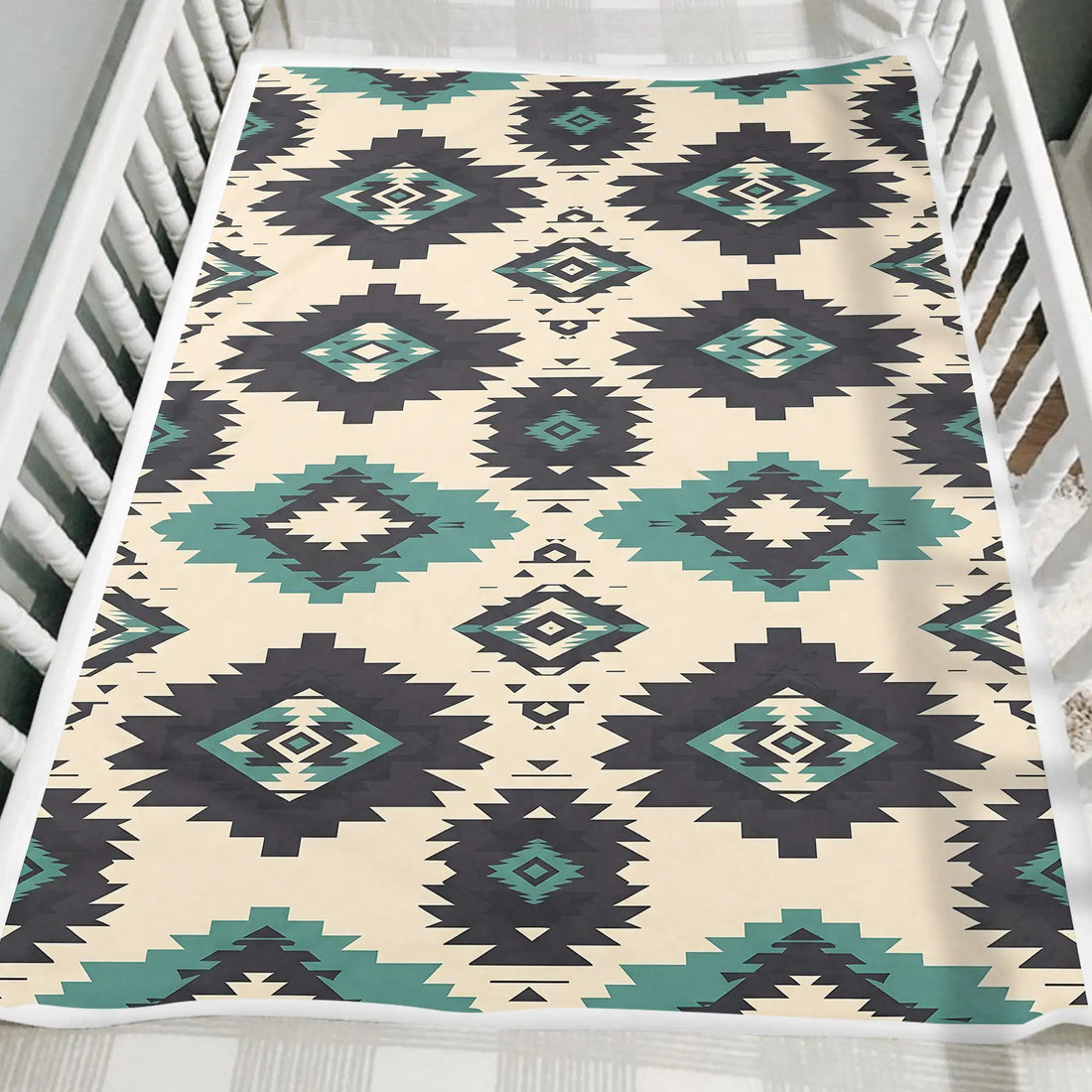Native America Throw Blanket, Teal Diamond Tribal Motif, Cozy Bed Cover