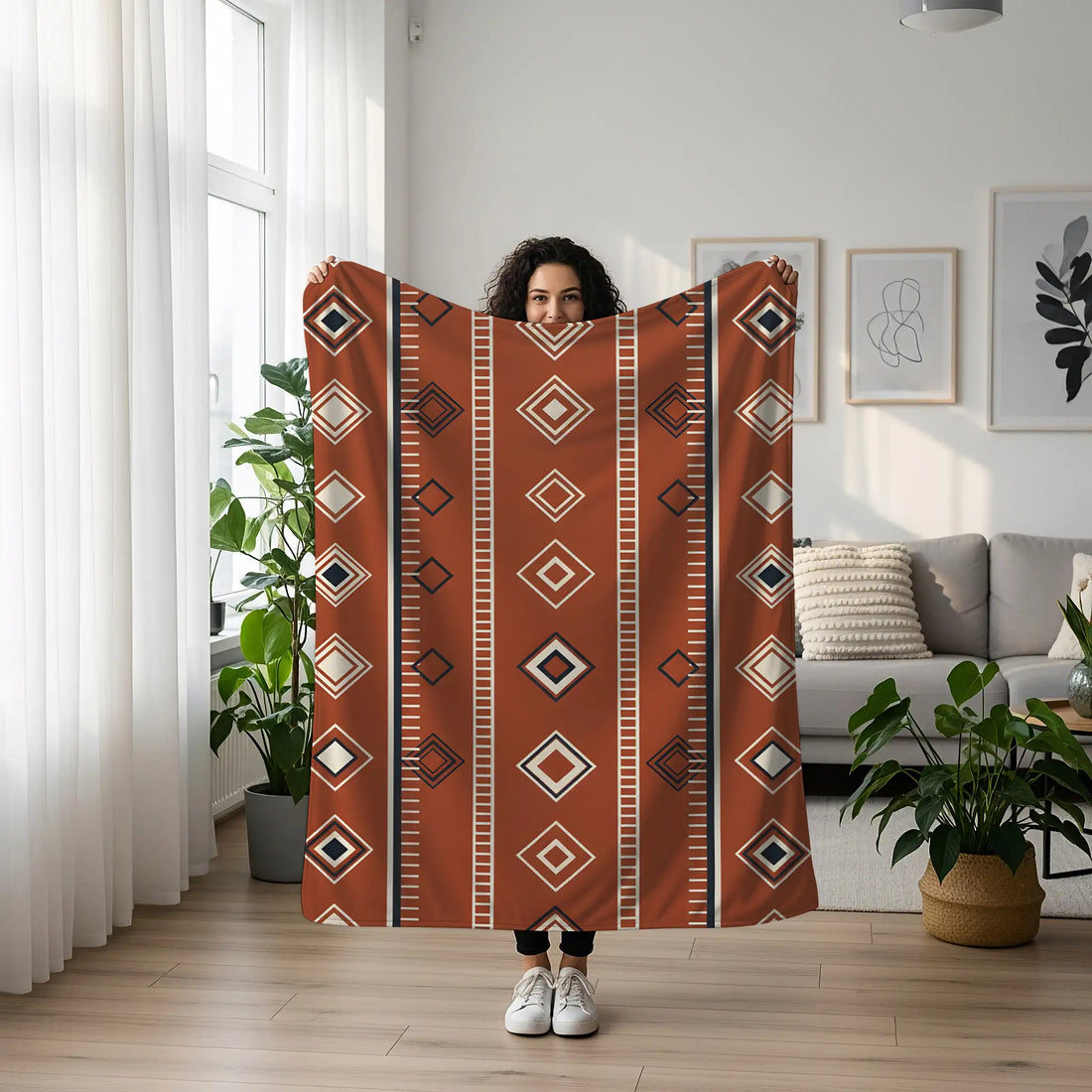 Native America Cozy Blanket, Geometric Tribal Diamond Design, Soft Throw