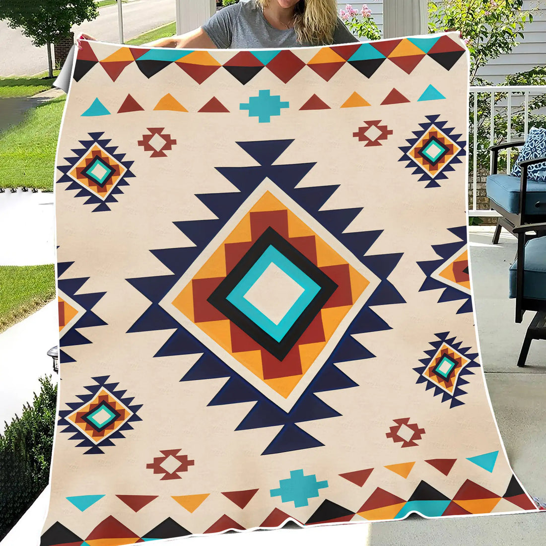 This blanket showcases a bold diamond geometric pattern inspired by Native America tribal designs, symbolizing...