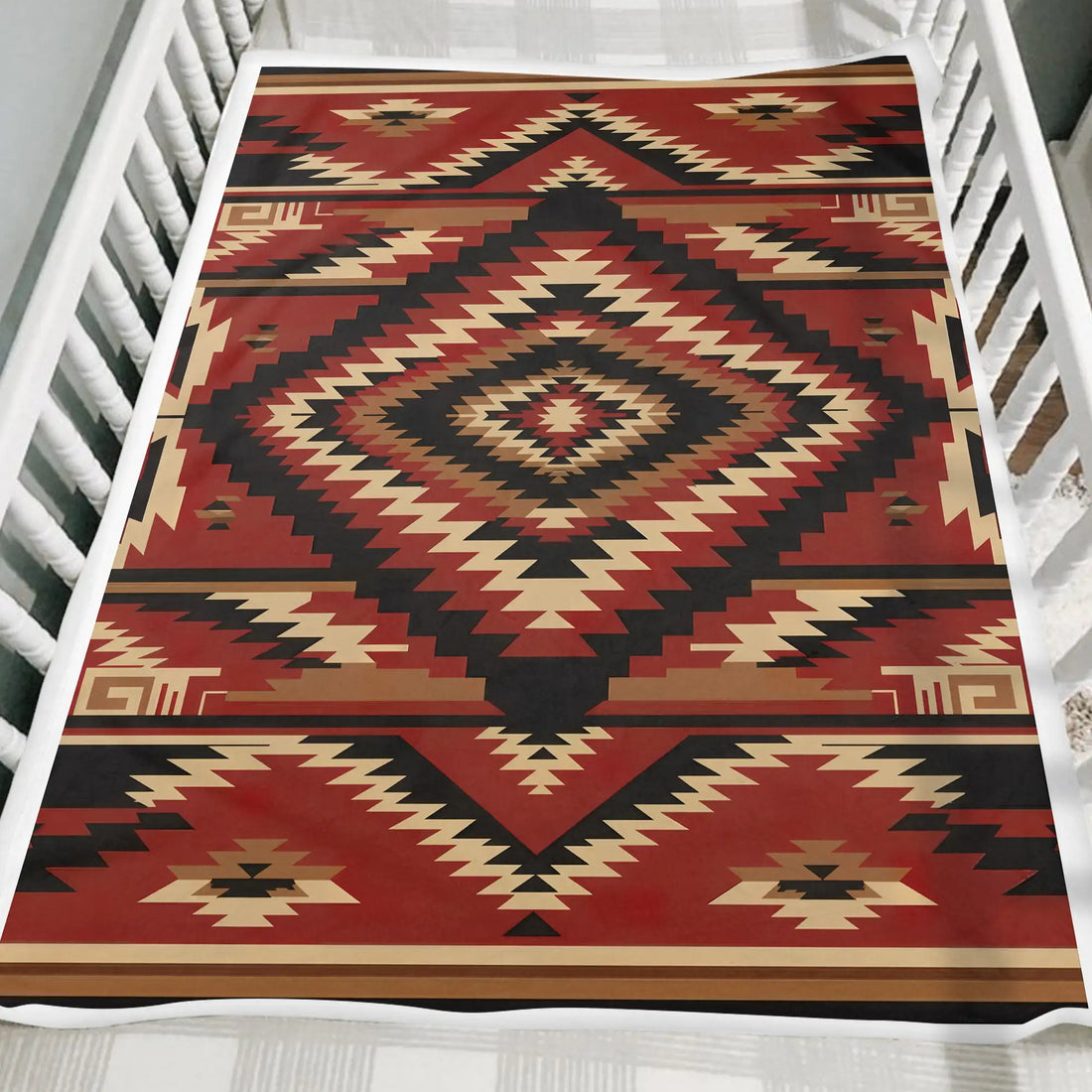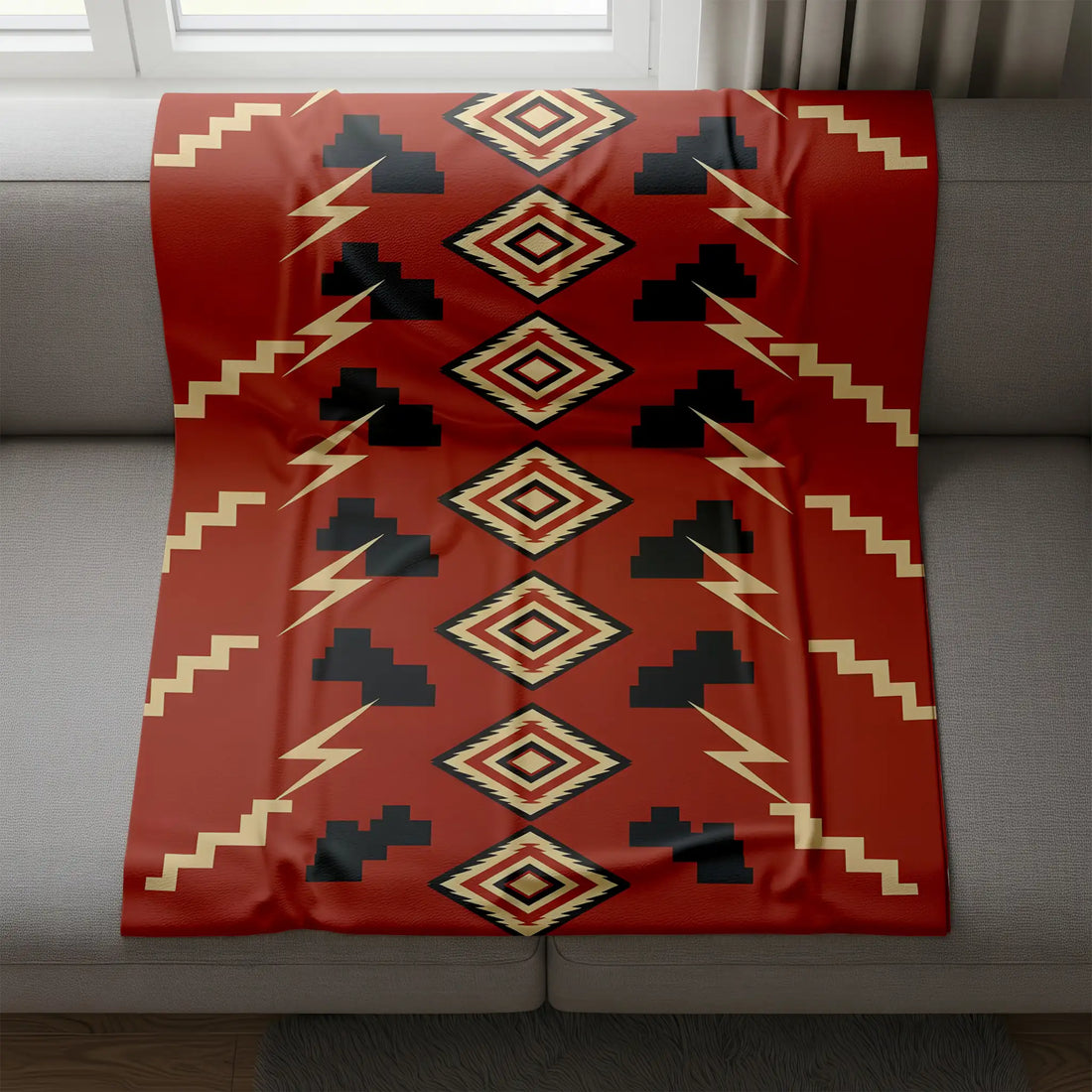 Indigenous Geometric Blanket, Red Diamond Pattern Cozy Home Throw
