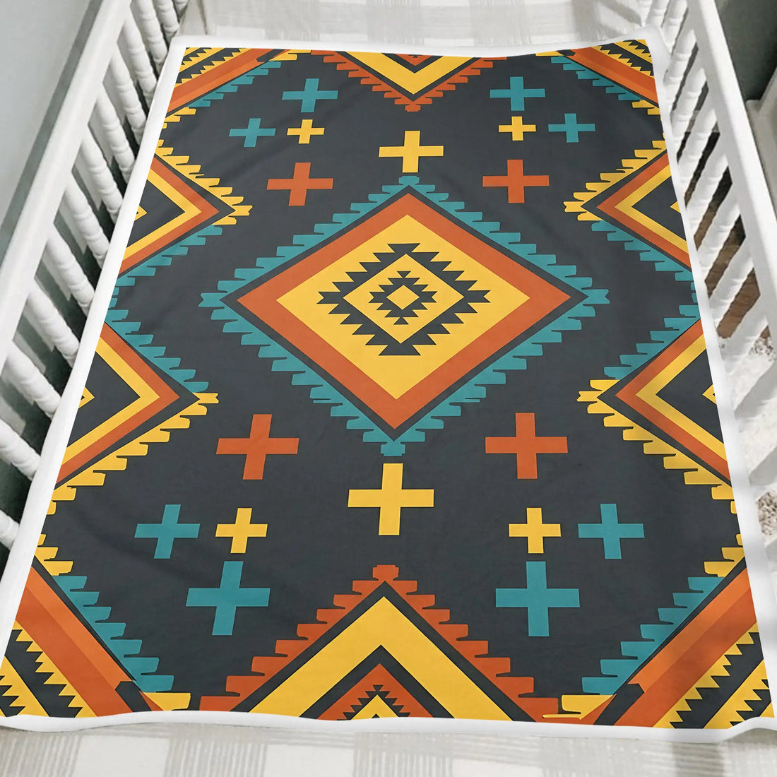 Geometric Cross Diamond Pattern, Indigenous Bedding Decor