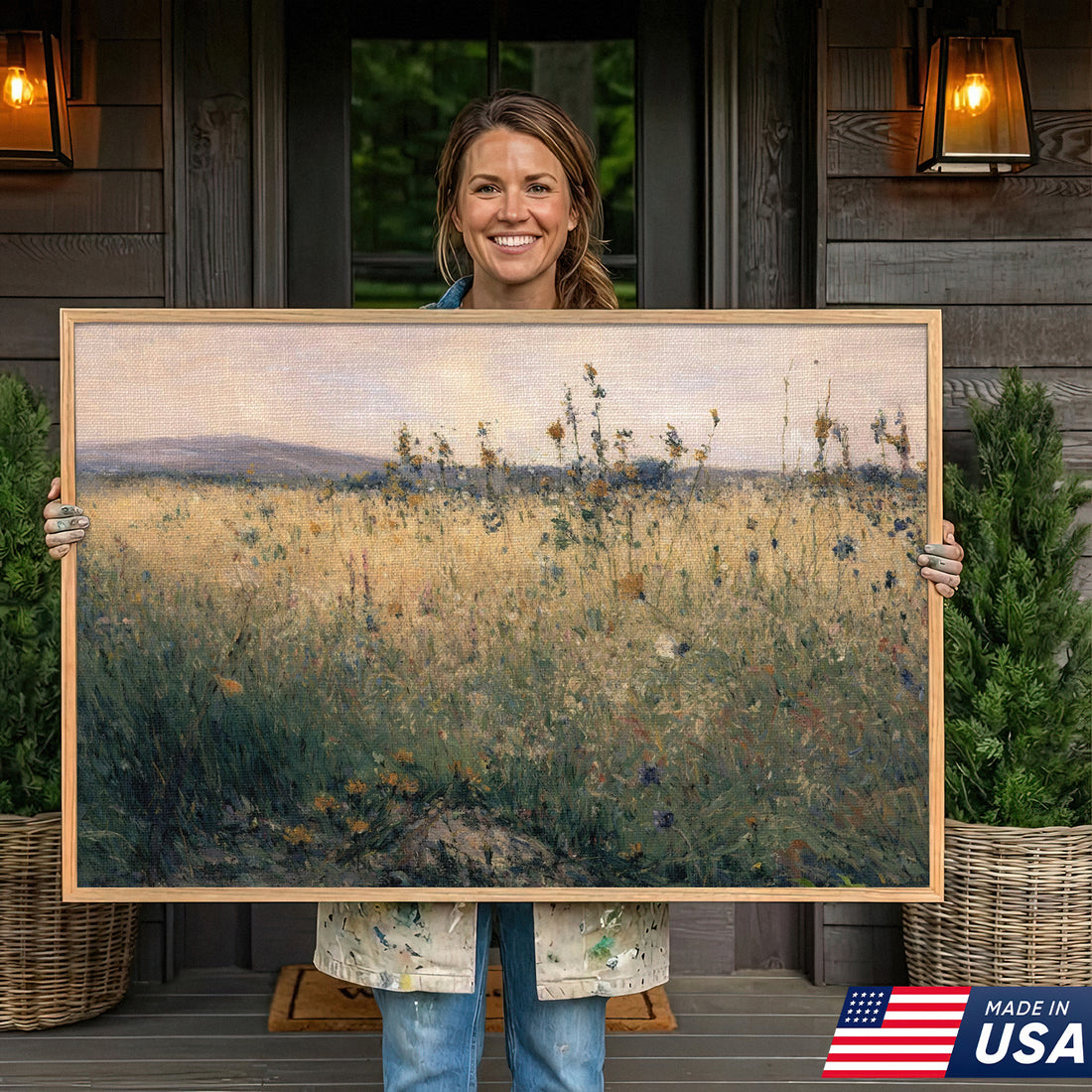 Fading Wild Field Framed Canvas β Quiet End of Season
