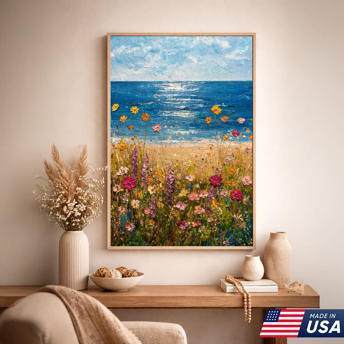 Where Flowers Meet the Sea β Coastal Bloom Canvas Art