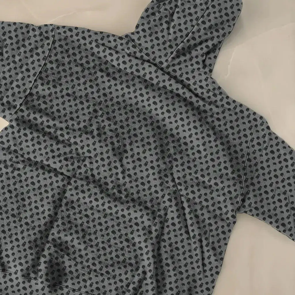 Monochrome print is sharp and not sticky. Hoodie is midweight, perfect for fall evenings.