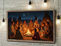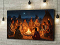 Native American Family Campfire Gathering, Indigenous Canvas Wall Art