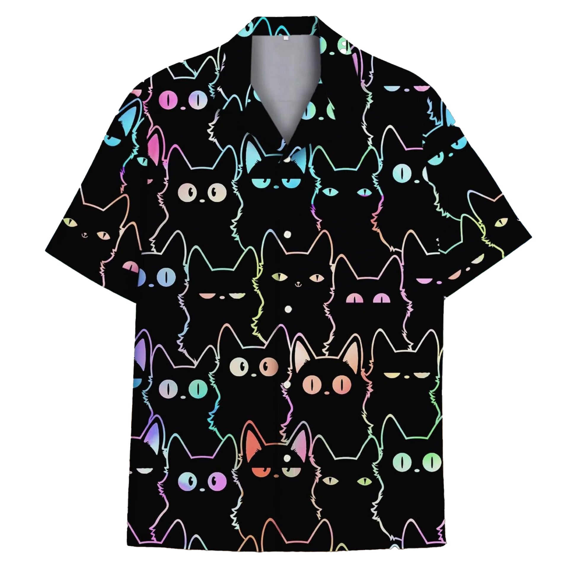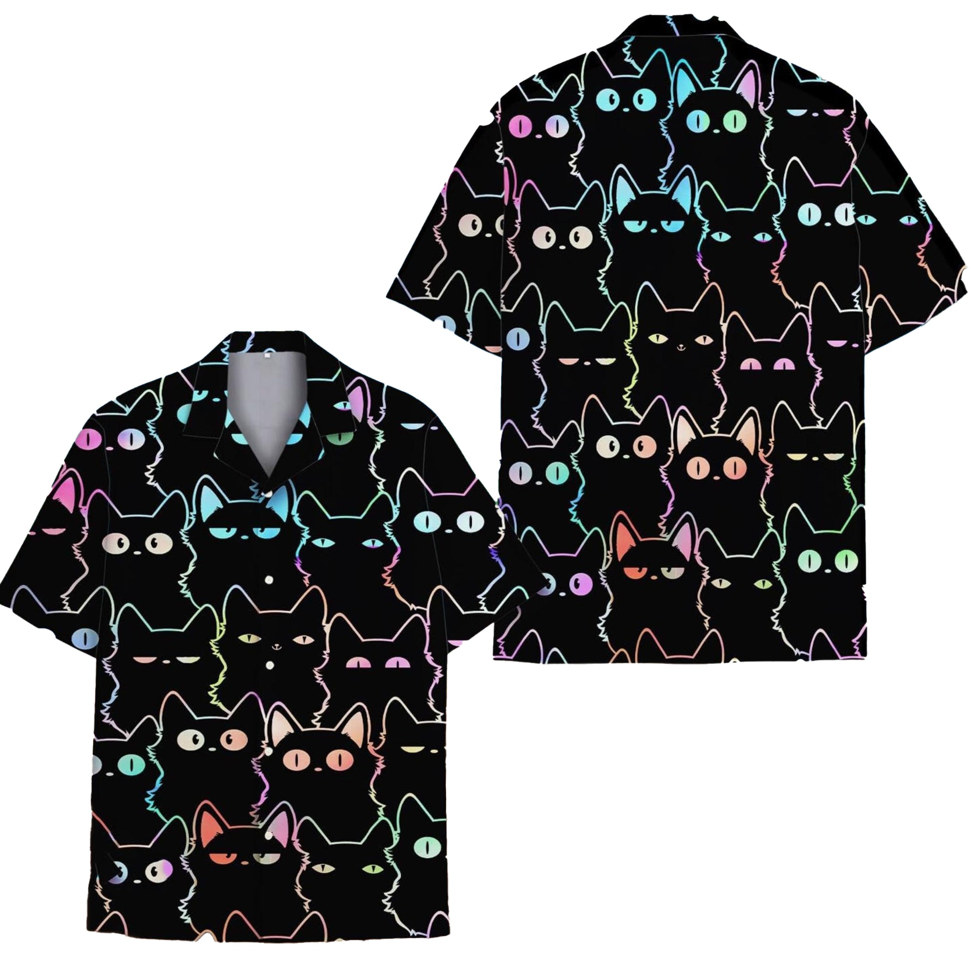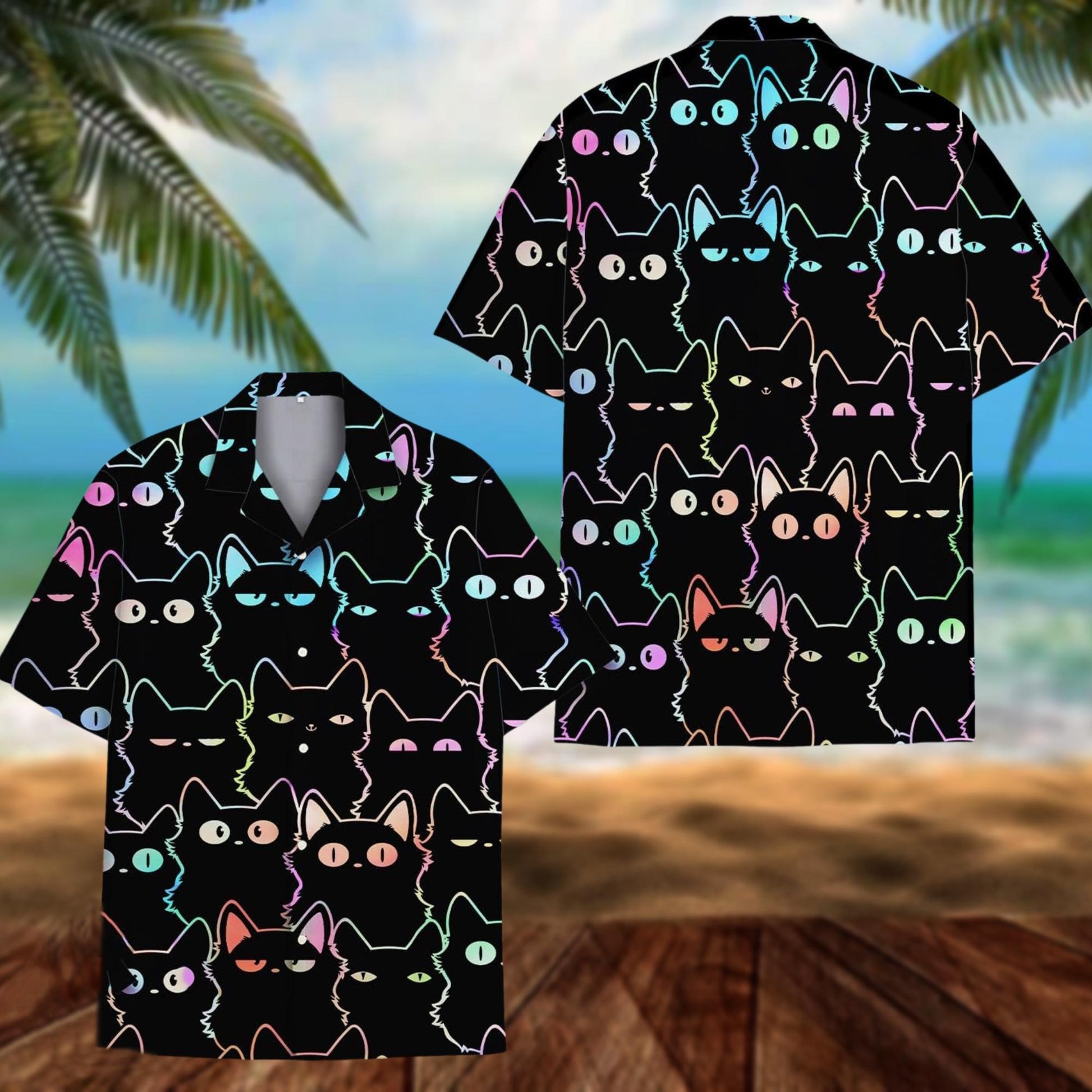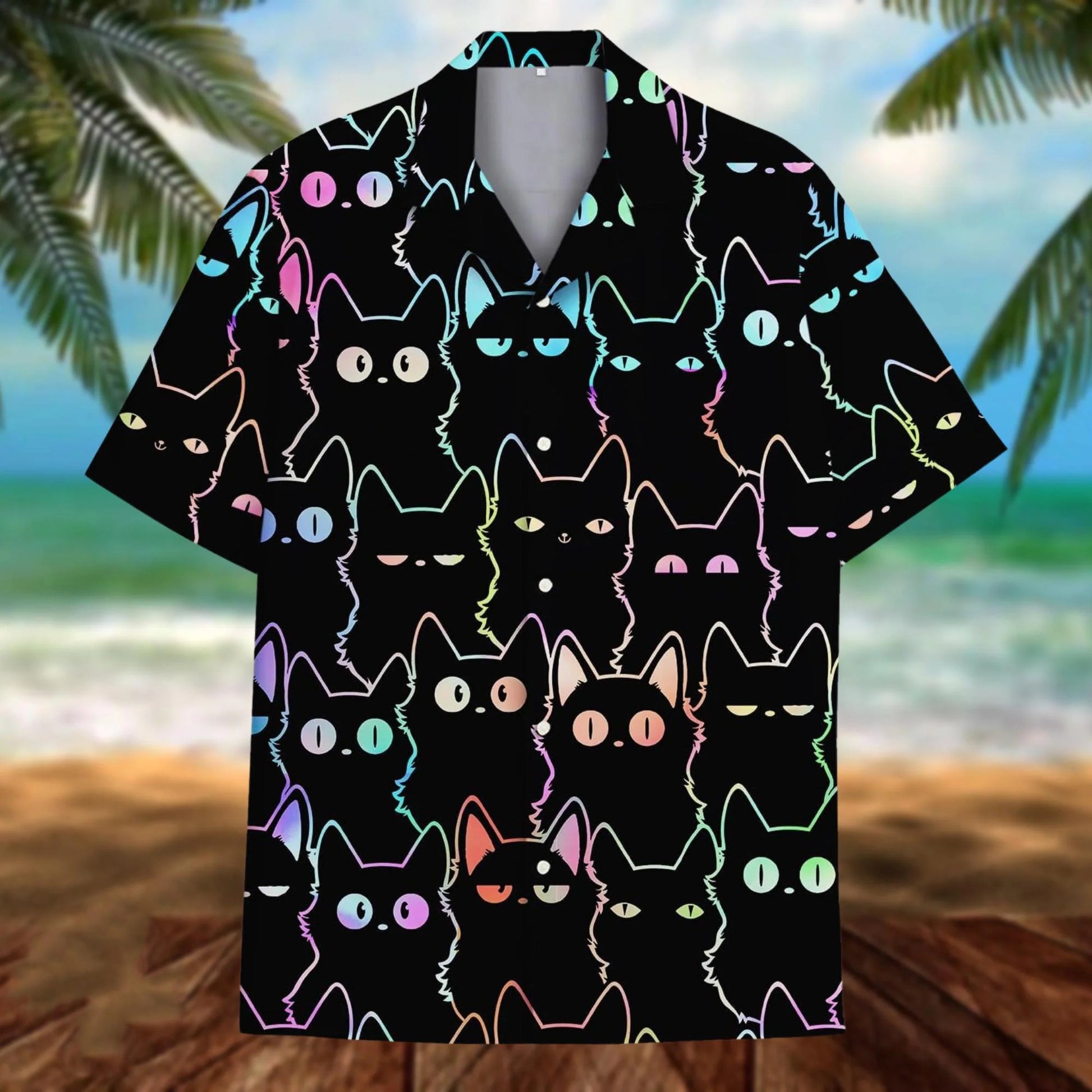 Black Cat Hawaii Shirt, Cute Neon Cat Hawaiian Shirt for Cat Lovers, Funny Colorful Kitty Aloha Shirt